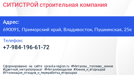 СИТИСТРОЙ, строительная компания по адресу 690091, Приморский край, Владивосток, Пушкинская, 25е в дальнейшем Организация, размещена в следующих категориях: