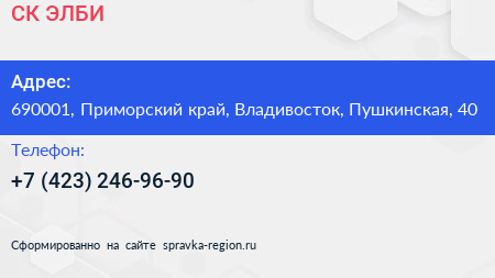 СК ЭЛБИ по адресу 690001, Приморский край, Владивосток, Пушкинская, 40 в дальнейшем Организация, размещена в следующих категориях: