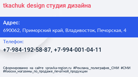 tkachuk.design, студия дизайна по адресу 690062, Приморский край, Владивосток, Печорская, 4 в дальнейшем Организация, размещена в следующих категориях: