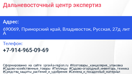 Дальневосточный центр экспертиз по адресу 690069, Приморский край, Владивосток, Русская, 27д лит А в дальнейшем Организация, размещена в следующих категориях: