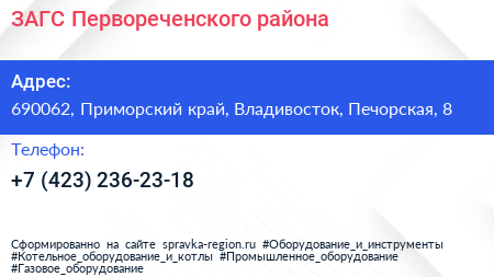 ЗАГС Первореченского района по адресу 690062, Приморский край, Владивосток, Печорская, 8 в дальнейшем Организация, размещена в следующих категориях: