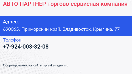 АВТО ПАРТНЕР, торгово-сервисная компания по адресу 690065, Приморский край, Владивосток, Крыгина, 77 в дальнейшем Организация, размещена в следующих категориях: