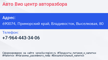 Авто Вио, центр авторазбора по адресу 690074, Приморский край, Владивосток, Выселковая, 80 в дальнейшем Организация, размещена в следующих категориях: