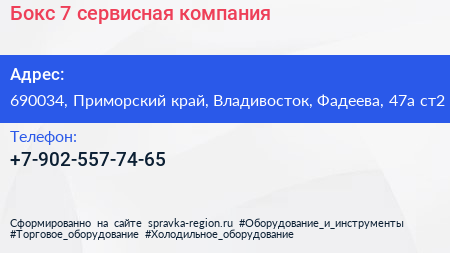 Бокс №7, сервисная компания по адресу 690034, Приморский край, Владивосток, Фадеева, 47а ст2 в дальнейшем Организация, размещена в следующих категориях: