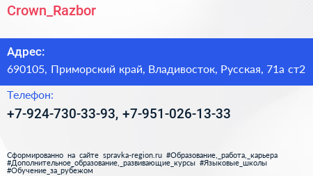 Crown_Razbor по адресу 690105, Приморский край, Владивосток, Русская, 71а ст2 в дальнейшем Организация, размещена в следующих категориях: