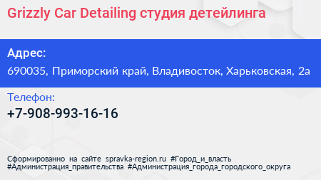 Grizzly Car Detailing, студия детейлинга по адресу 690035, Приморский край, Владивосток, Харьковская, 2а в дальнейшем Организация, размещена в следующих категориях: