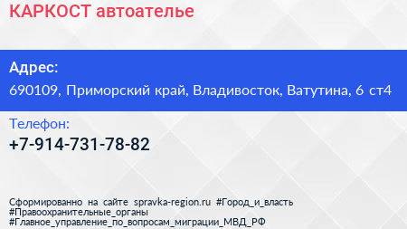 КАРКОСТ, автоателье по адресу 690109, Приморский край, Владивосток, Ватутина, 6 ст4 в дальнейшем Организация, размещена в следующих категориях: