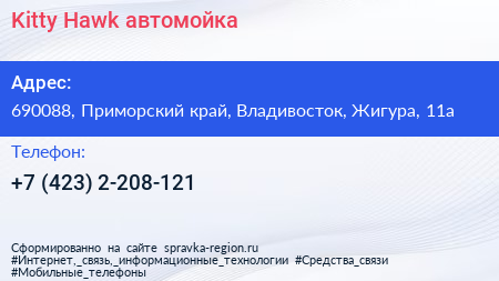 Kitty Hawk, автомойка по адресу 690088, Приморский край, Владивосток, Жигура, 11а в дальнейшем Организация, размещена в следующих категориях: