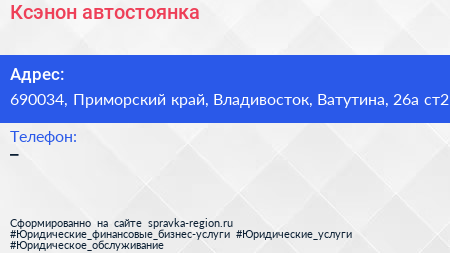 Ксэнон, автостоянка по адресу 690034, Приморский край, Владивосток, Ватутина, 26а ст2 в дальнейшем Организация, размещена в следующих категориях: