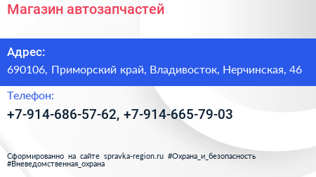 Магазин автозапчастей по адресу 690106, Приморский край, Владивосток, Нерчинская, 46 в дальнейшем Организация, размещена в следующих категориях:
