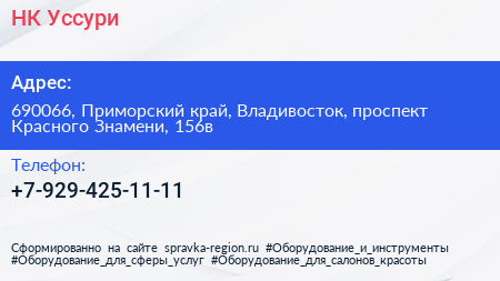 НК Уссури по адресу 690066, Приморский край, Владивосток, проспект Красного Знамени, 156в в дальнейшем Организация, размещена в следующих категориях: