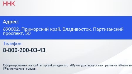 ННК по адресу 690002, Приморский край, Владивосток, Партизанский проспект, 50 в дальнейшем Организация, размещена в следующих категориях: