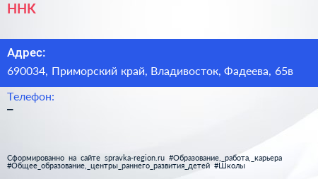 ННК по адресу 690034, Приморский край, Владивосток, Фадеева, 65в в дальнейшем Организация, размещена в следующих категориях: