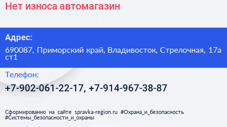 Нет износа, автомагазин по адресу 690087, Приморский край, Владивосток, Стрелочная, 17а ст1 в дальнейшем Организация, размещена в следующих категориях: