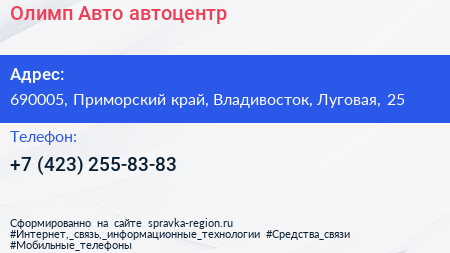 Олимп Авто, автоцентр по адресу 690005, Приморский край, Владивосток, Луговая, 25 в дальнейшем Организация, размещена в следующих категориях: