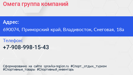 Омега, группа компаний по адресу 690074, Приморский край, Владивосток, Снеговая, 18а в дальнейшем Организация, размещена в следующих категориях: