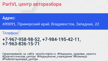 PartVL, центр авторазбора по адресу 690091, Приморский край, Владивосток, Западная, 22 в дальнейшем Организация, размещена в следующих категориях: