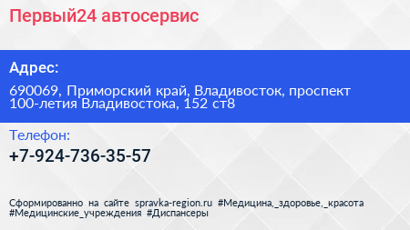 Первый24, автосервис по адресу 690069, Приморский край, Владивосток, проспект 100-летия Владивостока, 152 ст8 в дальнейшем Организация, размещена в следующих категориях: