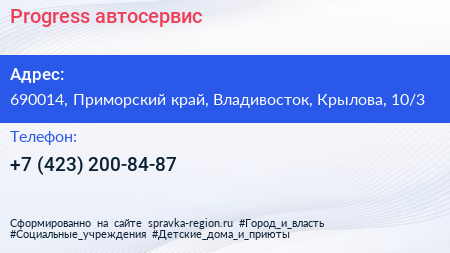 Progress, автосервис по адресу 690014, Приморский край, Владивосток, Крылова, 10/3 в дальнейшем Организация, размещена в следующих категориях:
