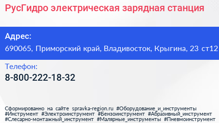 РусГидро, электрическая зарядная станция по адресу 690065, Приморский край, Владивосток, Крыгина, 23 ст12 в дальнейшем Организация, размещена в следующих категориях: