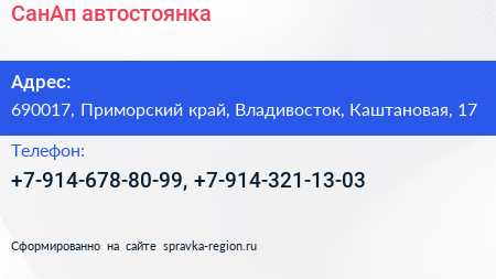 СанАп, автостоянка по адресу 690017, Приморский край, Владивосток, Каштановая, 17 в дальнейшем Организация, размещена в следующих категориях: