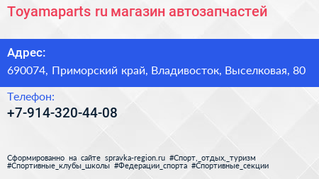 Toyamaparts.ru, магазин автозапчастей по адресу 690074, Приморский край, Владивосток, Выселковая, 80 в дальнейшем Организация, размещена в следующих категориях: