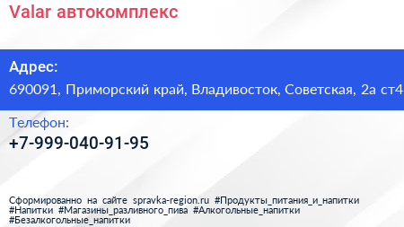 Valar, автокомплекс по адресу 690091, Приморский край, Владивосток, Советская, 2а ст4 в дальнейшем Организация, размещена в следующих категориях: