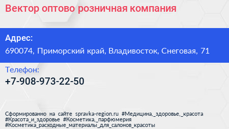 Вектор, оптово-розничная компания по адресу 690074, Приморский край, Владивосток, Снеговая, 71 в дальнейшем Организация, размещена в следующих категориях: