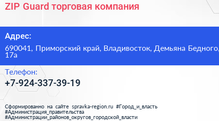 ZIP-Guard, торговая компания по адресу 690041, Приморский край, Владивосток, Демьяна Бедного, 17а в дальнейшем Организация, размещена в следующих категориях: