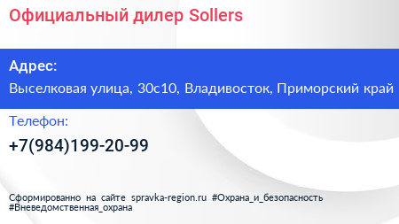 Официальный дилер «Sollers» по адресу Выселковая улица, 30с10, Владивосток, Приморский край в дальнейшем Организация, размещена в следующих категориях:
