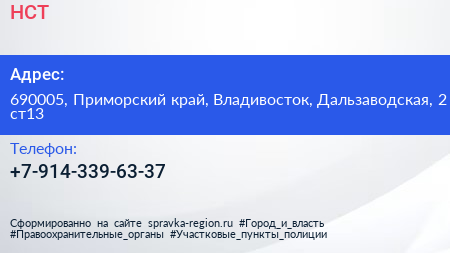 НСТ по адресу 690005, Приморский край, Владивосток, Дальзаводская, 2 ст13 в дальнейшем Организация, размещена в следующих категориях: