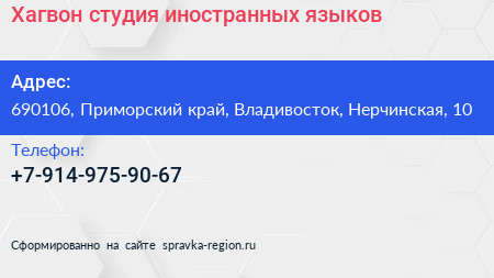 Хагвон, студия иностранных языков по адресу 690106, Приморский край, Владивосток, Нерчинская, 10 в дальнейшем Организация, размещена в следующих категориях: