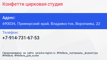 Конфетти, цирковая студия по адресу 690034, Приморский край, Владивосток, Воропаева, 22 в дальнейшем Организация, размещена в следующих категориях: