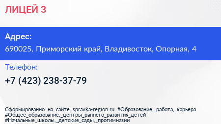 ЛИЦЕЙ № 3 по адресу 690025, Приморский край, Владивосток, Опорная, 4 в дальнейшем Организация, размещена в следующих категориях: