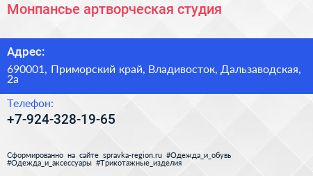 Монпансье, артворческая студия по адресу 690001, Приморский край, Владивосток, Дальзаводская, 2а в дальнейшем Организация, размещена в следующих категориях: