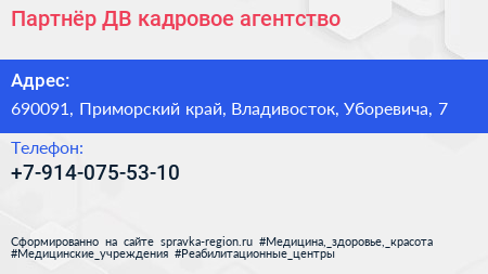 Партнёр ДВ, кадровое агентство по адресу 690091, Приморский край, Владивосток, Уборевича, 7 в дальнейшем Организация, размещена в следующих категориях: