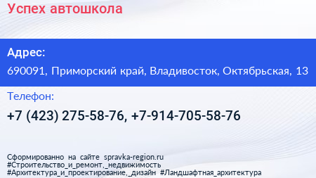 Успех, автошкола по адресу 690091, Приморский край, Владивосток, Октябрьская, 13 в дальнейшем Организация, размещена в следующих категориях: