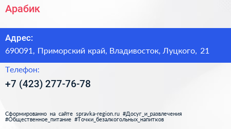 Арабик по адресу 690091, Приморский край, Владивосток, Луцкого, 21 в дальнейшем Организация, размещена в следующих категориях: