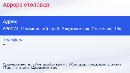 Аврора, столовая по адресу 690074, Приморский край, Владивосток, Снеговая, 18а в дальнейшем Организация, размещена в следующих категориях: