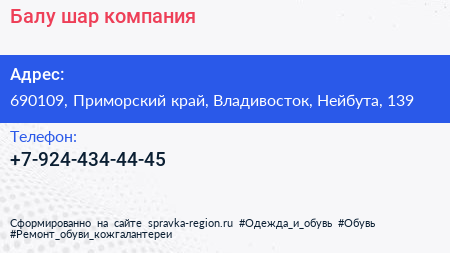 Балу шар, компания по адресу 690109, Приморский край, Владивосток, Нейбута, 139 в дальнейшем Организация, размещена в следующих категориях: