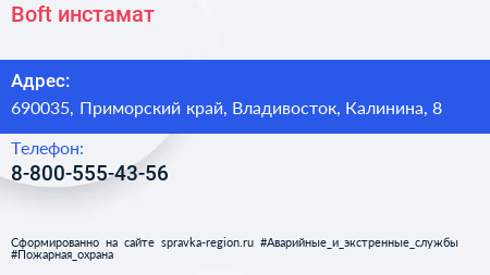 Boft, инстамат по адресу 690035, Приморский край, Владивосток, Калинина, 8 в дальнейшем Организация, размещена в следующих категориях: