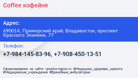 #Coffee, кофейня по адресу 690014, Приморский край, Владивосток, проспект Красного Знамени, 77 в дальнейшем Организация, размещена в следующих категориях:
