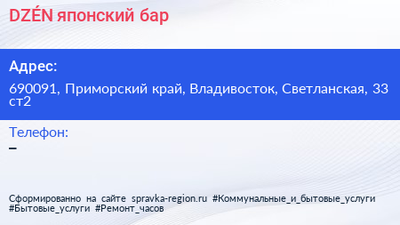 DZÉN, японский бар по адресу 690091, Приморский край, Владивосток, Светланская, 33 ст2 в дальнейшем Организация, размещена в следующих категориях: