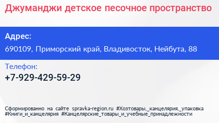 Джуманджи, детское песочное пространство по адресу 690109, Приморский край, Владивосток, Нейбута, 88 в дальнейшем Организация, размещена в следующих категориях: