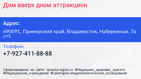 Дом вверх дном, аттракцион по адресу 690091, Приморский край, Владивосток, Набережная, 7а ст5 в дальнейшем Организация, размещена в следующих категориях: