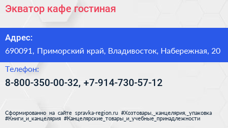 Экватор, кафе-гостиная по адресу 690091, Приморский край, Владивосток, Набережная, 20 в дальнейшем Организация, размещена в следующих категориях: