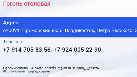 Гоголь, столовая по адресу 690091, Приморский край, Владивосток, Петра Великого, 3 в дальнейшем Организация, размещена в следующих категориях: