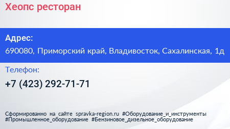 Хеопс, ресторан по адресу 690080, Приморский край, Владивосток, Сахалинская, 1д в дальнейшем Организация, размещена в следующих категориях: