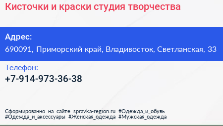 Кисточки и краски, студия творчества по адресу 690091, Приморский край, Владивосток, Светланская, 33 в дальнейшем Организация, размещена в следующих категориях: