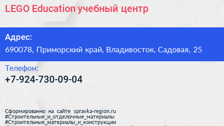 LEGO Education, учебный центр по адресу 690078, Приморский край, Владивосток, Садовая, 25 в дальнейшем Организация, размещена в следующих категориях: